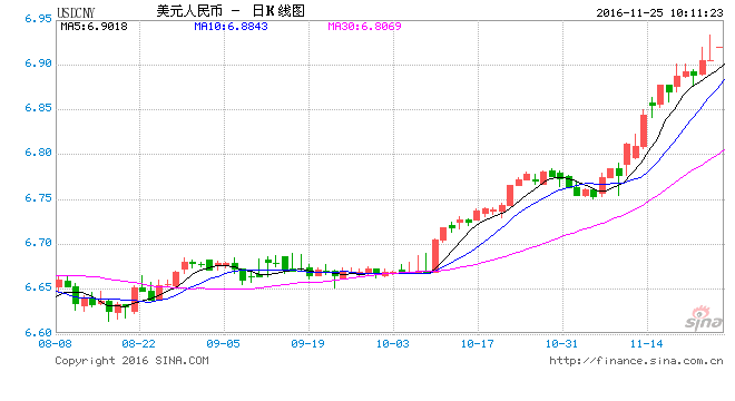 基金经理老鼠仓,说好保本变巨亏,买基金被坑请到【基金曝光台】!信用卡无故遭盗刷,银行存款变保险,理财被骗请猛戳【金融曝光台】! 新浪财经讯 11月25日消息,早间中国外汇交易中心发布公告,人民币(6.9193, 0.0145,0.21%)汇率中间价报6.9168,下调83个基点,再创2008年6月以来的新低。 人民币对美元汇率中间价经过此前12个交易日连续下调后,仅于11月22日出现反弹;11月23日重拾跌势,24日又下调181个基点至6.9085,连续创下逾8年新低。 分析人士认为,即便美元指数(101.8242, 0.0848, 0.08%)出现回调,人民币汇率的反向幅度也不会太大,短期人民币贬值的惯性会增强,仍面临破“7”压力。不过,主流观点仍然认为,中长期看人民币不具备大幅贬值的条件,最终还是会回到由基本面决定的水平。 人民币有“底”且不弱 人民币对美元能否守住“7”,市场可能没有“底”,但普遍认为,人民币汇率是有“底”的,单边贬值行情不会长期维持。 分析人士表示,近期人民币对美元出现一定贬值,反映当前中、美在经济增长周期及货币政策周期现状及预期层面的差异。在市场主体行为影响下,汇率变化可能会出现阶段性超调,但基本趋势与经济、金融形势变化是匹配的,这种市场供求因素主导的人民币汇率波动,符合人民币汇率定价机制改革方向,是必然会出现的现象。 短期看,不排除人民币对美元汇率在“7”元关口附近争夺,但不能把汇率有效止跌寄托在“心理关口”支撑上。事实上,如果过度抑制人民币贬值,只会加剧汇率定价扭曲,人为增加风险隐患。同时,预计监管部门会适时适当修正贬值速率,确保人民币对美元汇率贬值有序、可控。我国拥有丰厚的外储和丰富的干预政策储备,加上我国仍是资本管制国家,人民币资本项目下尚不能自由兑换,人民币对美元贬值不会失控,渐近释放贬值压力带来的系统性风险可控。中长期看,犹如中国经济出现阶段调整一样,近期人民币对美元贬值只是汇率转向双边波动中的一环,单边贬值不会长期持续。 对非美元货币仍强势 实际上,尽管人民币对美元汇率持续下跌,但人民币对其他非美货币却依然强势。Wind数据显示,自11月7日重拾涨势以来,美元指数已经累计上涨5%,而同期人民币对美元即期汇率的下跌幅度仍不足2.5%。在同一时间段,欧元(1.0552, 0.0000, 0.00%)兑美元则下跌逾5.5%,日元对美元的下跌幅度则更是逼近10%。 自11月7日以来,人民币对日元即期汇率则上涨了超过6%。 “在人民币对美元双边汇率贬值的同时,人民币对一篮子货币汇率仍保持了基本稳定,还略有升值,总体上,市场对人民币汇率波动并没有担忧。”央行网站11月4日转载中国货币网特约评论员文章指出。 中国外汇投资研究院院长谭雅玲表示,不必过度关注人民币对美元汇率。人民币对美元、人民币汇率指数、人民币对SDR篮子货币和人民币对BIS篮子货币,关注这种组合更有利于均衡全面地认识汇率的波动。 美元指数续创新高 亚洲主要货币跌跌不休 美联储24日公布的会议纪要显示,多数联邦公开市场委员会(FOMC)成员认为合适的加息时机将很快到来。市场对12月美联储加息概率的预期已超过90%。美元指数延续强势表现,24日盘中一度冲破102的高位,创13年半以来新高,从大选前97左右的水平升至目前的102,半个月内的涨幅超过5%。 统计数据显示,11月8日特朗普胜出以来,亚洲主要货币汇率跌声一片。 其中,美元兑日元(113.77, 0.4500, 0.40%)今日早盘持续了近日的涨势,现报113.74,续创3月29日来新高,自特朗普当选以来日元已贬值逾7.6%。 截至11月24日晚上20点,马来西亚林吉特(4.4600, 0.0150, 0.34%)11月8日以来累计贬值6.77%,已经创下10个月以来的新低。美元对菲律宾比索汇率一度跌破50,为2008年来首次,年初至今,菲律宾比索的跌幅约6%,其中的3.13个百分点,是特朗普当选后贡献的。 此外,印度卢比自特朗普当选以来已经下滑3.74%,为15个月以来最大。而韩元则累计贬值4.52%。